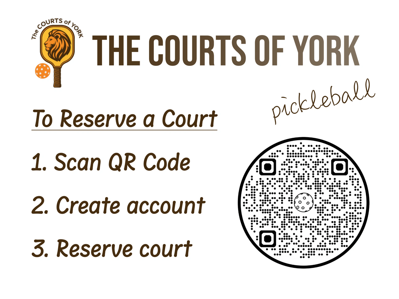 TO RESERVE COURT TIME VISIT PICKLE PLANNER COURTS OF YORK
